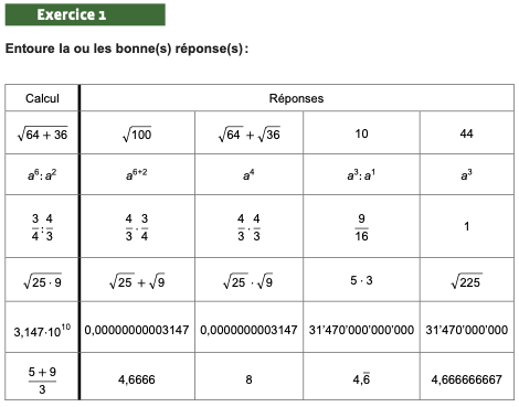 NO RéelsNombres réels Nombres rationnels Puissances et racines |